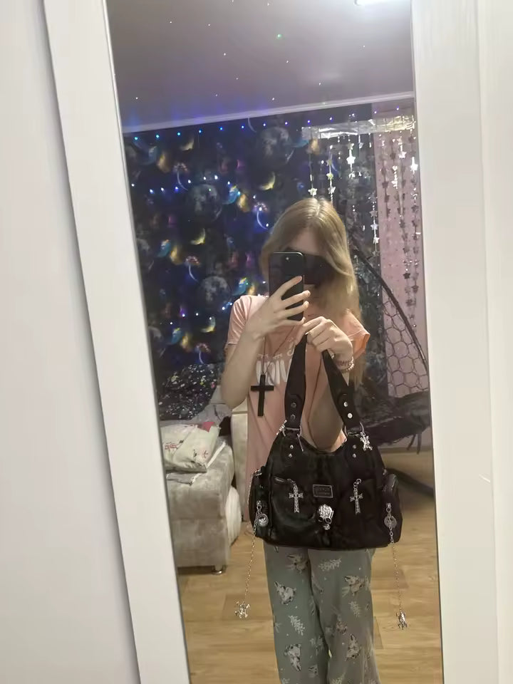 Gently clean the bag with a soft, damp cloth. Avoid harsh chemicals and prolonged exposure to direct sunlight to maintain its appearance.